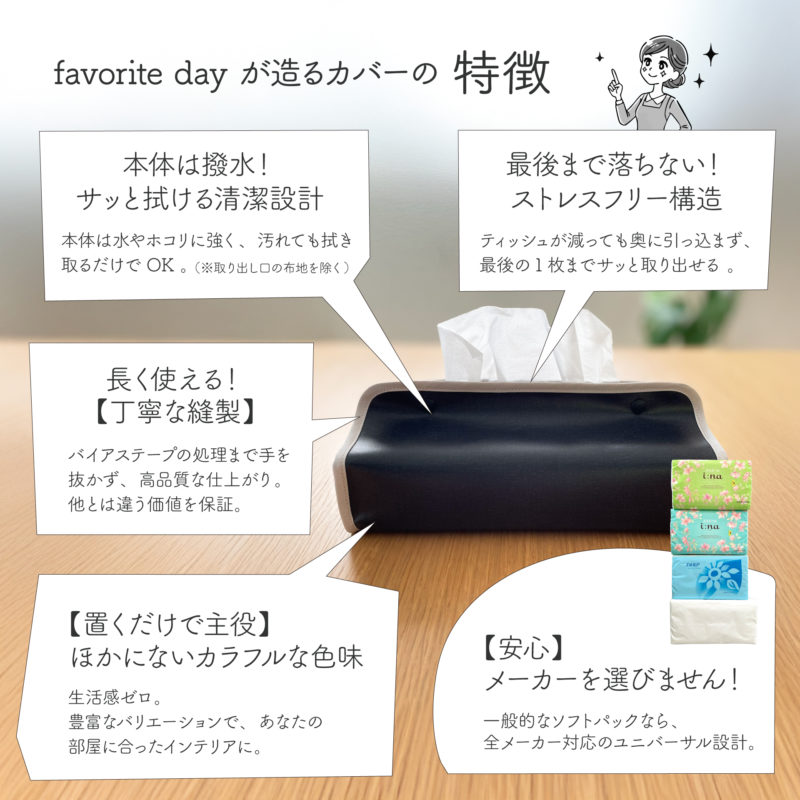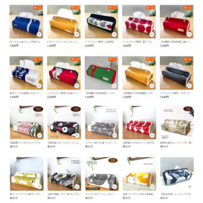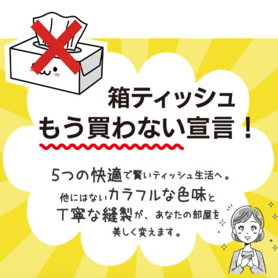 仕事とは別に、日々のものづくりの延長として、ティッシュカバーの制作を続けています。素材はラミネート生地を使用し、汚れにくく、気兼ねなく使えることを大切にしています。